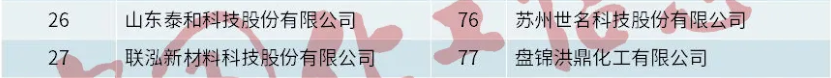 近日,“2024年度中國精細化工百強”榜單發布,我市山東泰和科技股份有限公司、聯泓新材料科技股份有限公司分別位列第26、27位。同時,泰和科技還入圍2024年度中國精細化工創新發展企業二十強榜單,位列第16位。